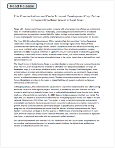 Etex and the Center Economic Development Corporation enter into a public private partnership to bring high speed fiber Internet to the City of Center Texas.